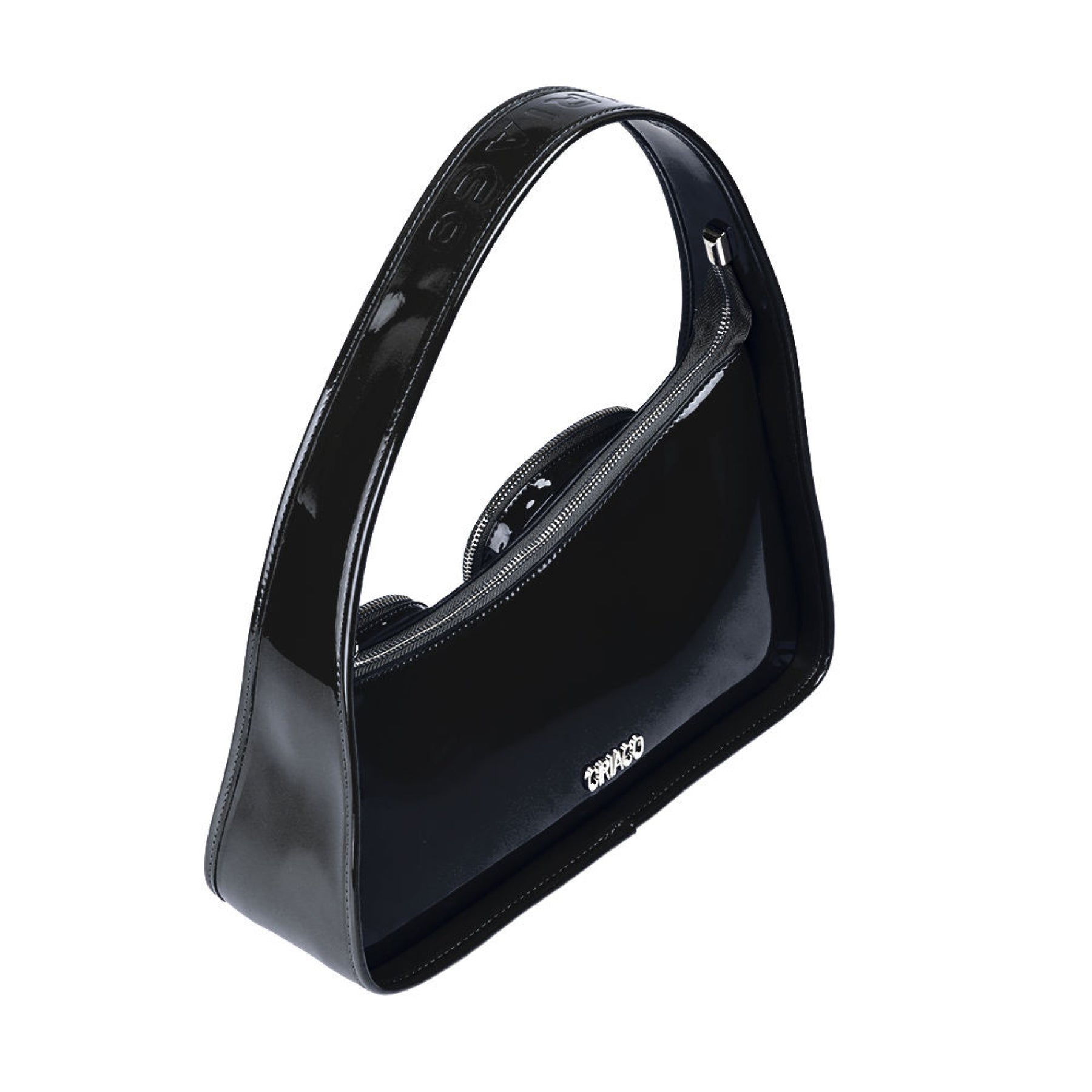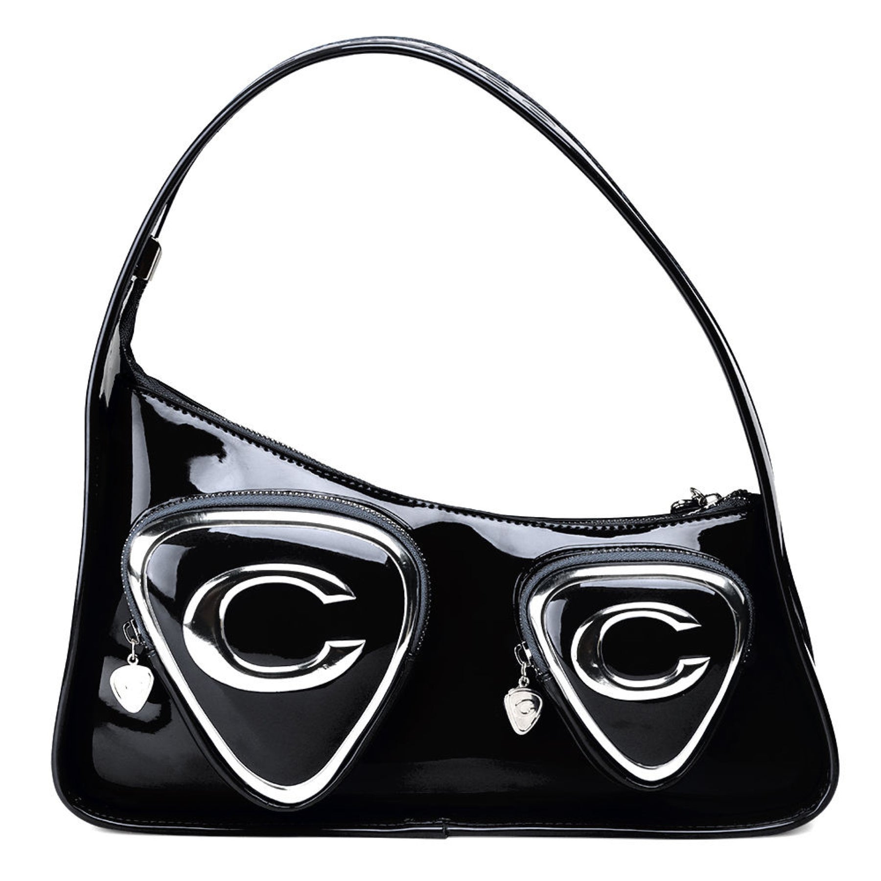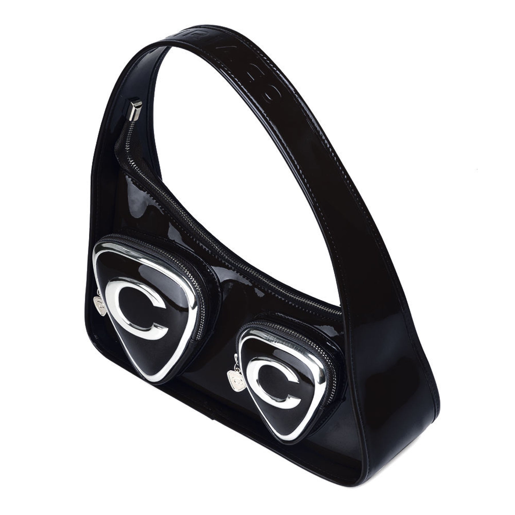 This baguette lets our secondary 'C' logo do all of the talking. Designed with a sleek, ultra-soft 100% mirrored PU leather. Dual exterior pockets of Ciriaco's secondary logo and silver TPU hardware outline. Including the classic Ciriaco engraved logo on the top handle of baguette and signature metal logo on lower back panel.